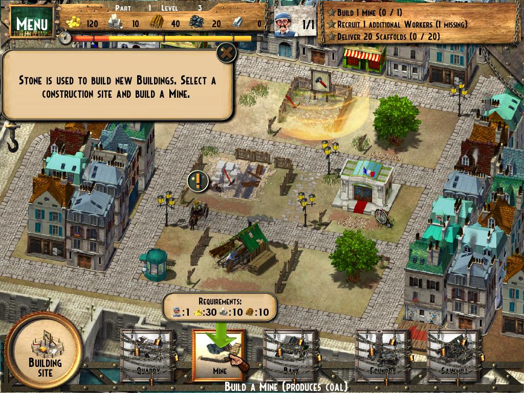 Viaje através do tempo e testemunhe uma construção histórica em Monument Builders: Eiffel Tower, um jogo incrível de Gestão do Tempo! Viaje pelas ruas da Paris do século 19 e visite o incrível local de construção da famosa Torre Eiffel. Melhore os bairros vizinhos para a Expo Mundial, forneça peças para o canteiro de obras, desenvolva a economia local, e melhore as estradas para ser mais fácil de transportar materiais para a construção da Torre Eiffel!